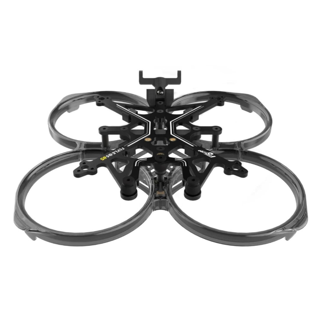 The Flylens 85 frame is a 2-inch whoop-type frame designed for indoor and narrow space flight. It is compatible with various mainstream digital and analog image transmission systems. The frame is equipped with an injection-molded protective ring and a carbon black treatment process.