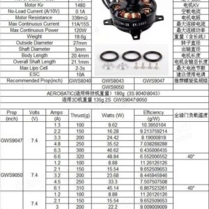 – KV (rpm / v): 1480